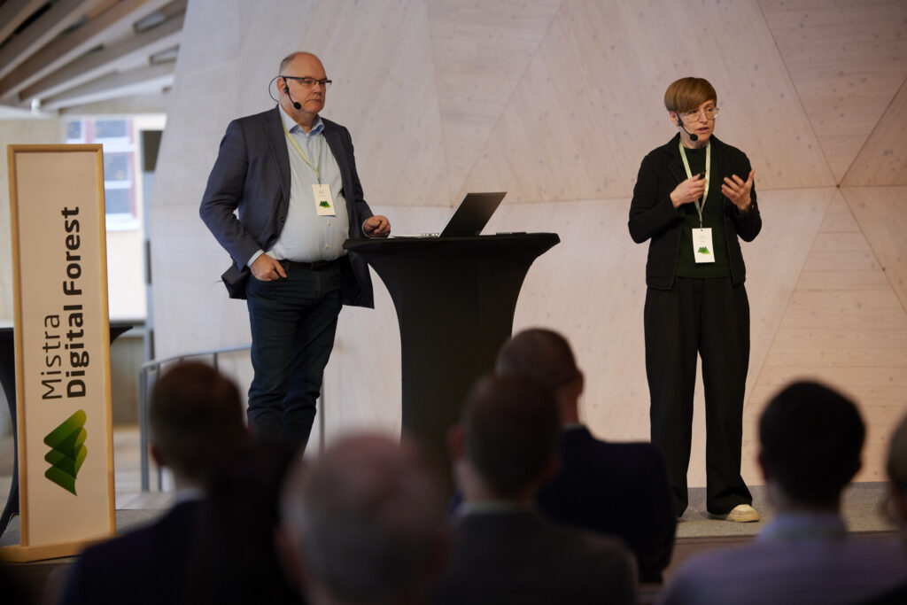 Mistra Digital Forest handlar om att använda digitalisering för att driva på skogsbruket mot önskade mål och öka alla tre dimensioner av hållbar utveckling – och denna dag var inget undantag. Projekten som presenterades på programkonferensen konkretiserade den digitala nyttan. Bland annat fick vi inblick i utvecklingen av automatiserade lösningar för ett resurssmart skogsbruk. Några av projekten presenterade hur de arbetar med smarta beslutsstöd i den skogliga planeringen medan andra utforskar hur digitala tvillingar kan vara behjälpliga i dialogprocesser. Vi förstod att vi nu befinner oss i en ”perfekt storm” för skoglig digitalisering och automation och att det under kommande år kommer att göra stora avtryck.